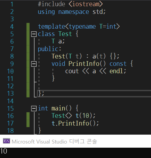 ③ 템플릿 인수의 디폴트 값을 설정할 수 있다.
