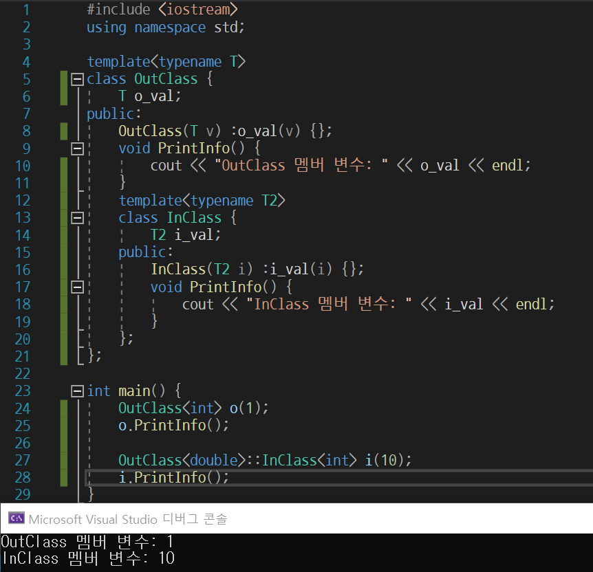 ② 클래스를 중첩하여 정의하는 중첩 클래스 템플릿(클래스 내부에서 정의된 템플릿 클래스)이 존재한다.