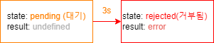 3초 뒤에 state가 rejected로 바뀌고 result는 error가 된다.