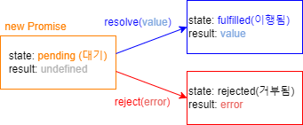 new Promise 생성자가 반환하는 프로미스 객체는 state와 result를 프로퍼티로 갖는다.