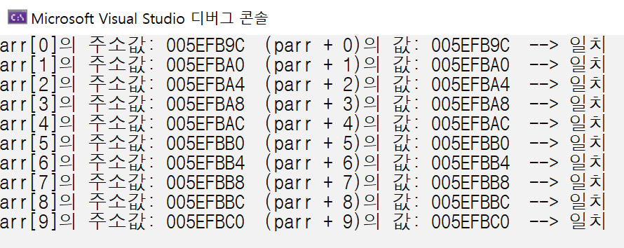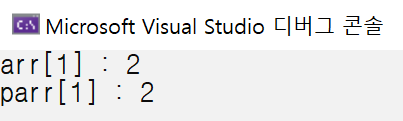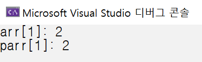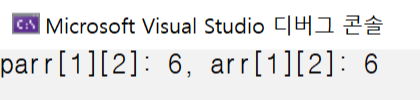 arr은 배열의 첫 번째 원소를 가리키는 포인터로 변환되고, 그 원소의 타입이 int이므로, 포인터의 타입은 int*가 된다. 따라서 parr을 통해서 arr을 이용했을 때와 동일하게 배열의 원소에 마음껏 접근할 수 있는 것이 된다.