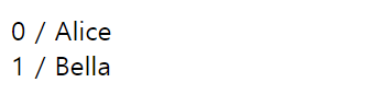 <div v-for="(item, index) in myArr">{{ index }} / {{ item.name }}</div>