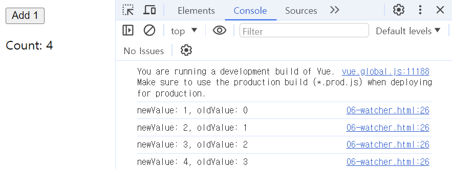 감시하는 변수에 변화가 생겼을 때 기본 동작 확인하기