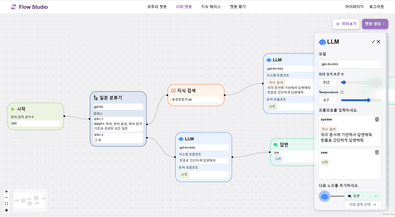 누구나 쉽게 LLM 챗봇을 만들 수 있도록 돕는 플랫폼 "Flow Studio"를 개발했다.