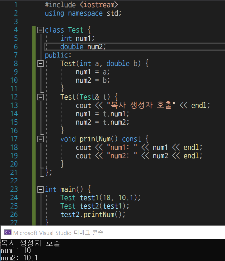 복사 생성자는 동일한 클래스 타입의 다른 객체에 대한 참조(reference)를 인수로 받아서 생성하는 객체를 초기화하도록 하는 깊은 복사를 통한 복사이다. 따라서 복사 대상인 원본 객체와 같으면서 서로 독립적인 다른 객체가 되도록 해준다. 만약 깊은 복사를 하지 않는다면 두 객체 중 하나의 값이 바뀐다면 나머지 값도 같이 변경된다.