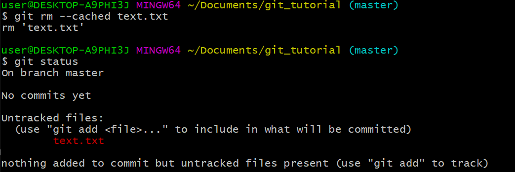 git rm —cached [파일명] → staging area에서 내림