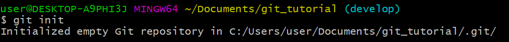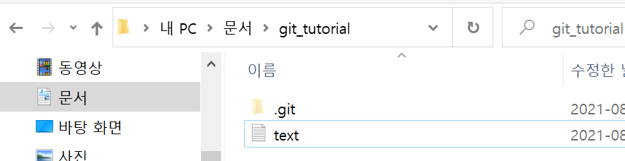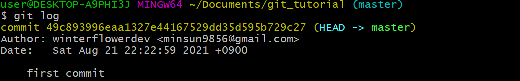 git_tutorial 폴더에서 git bash 열기