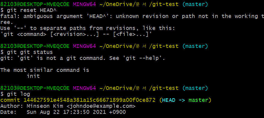 ※ HEAD: 가장 최근 버전에서 / ^: 하나 되돌리자