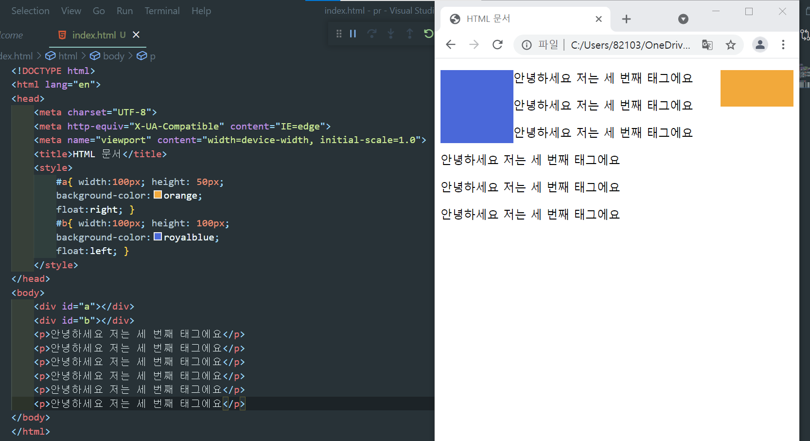 - right : float이 right인 요소의 아래로 내려가겠다.