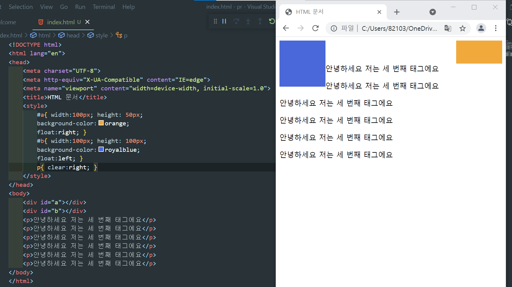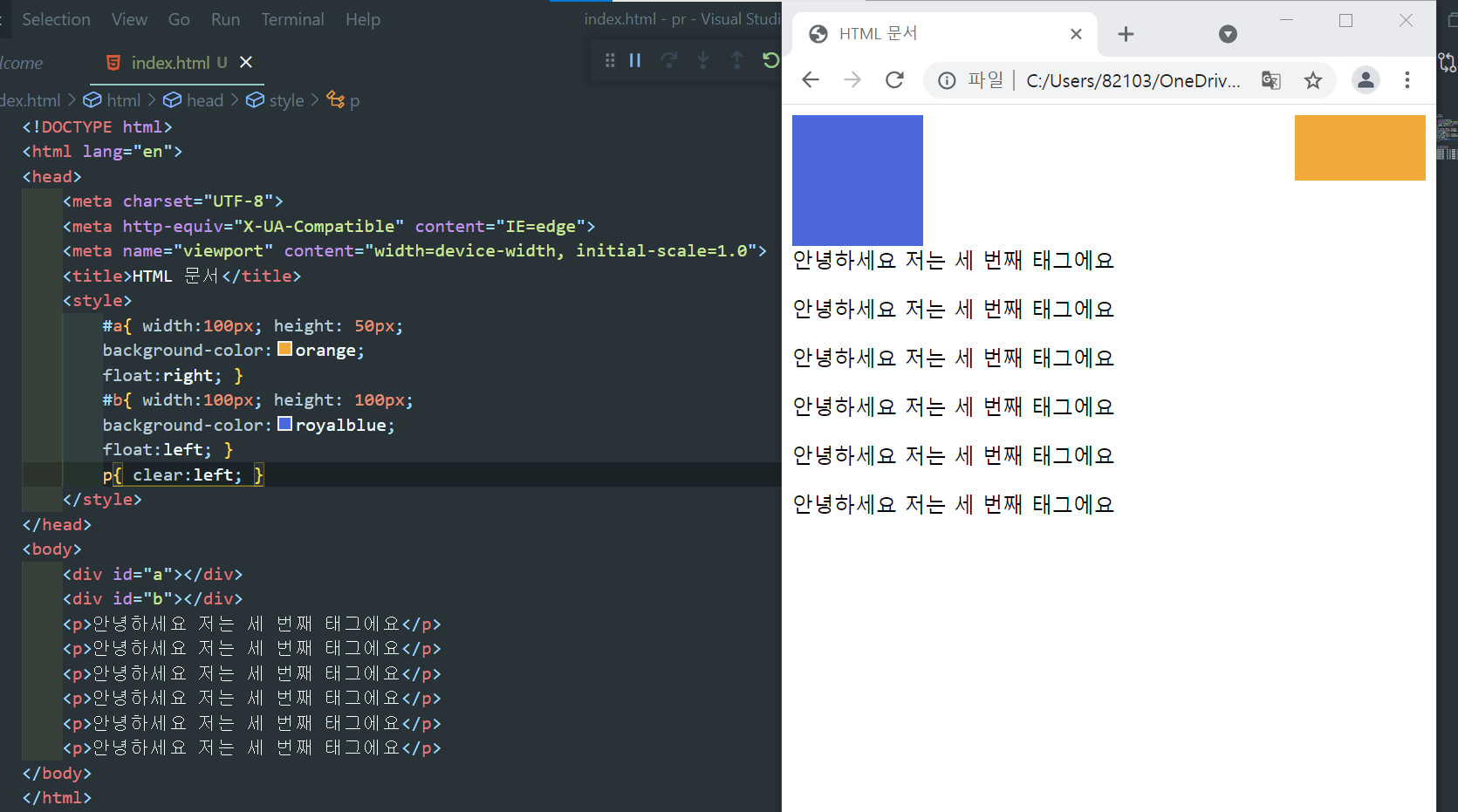 clear - float 요소 이후에 표시되는 요소가 float를 해제하여 float 요소의 아래로 내려가게 할 수 있다.